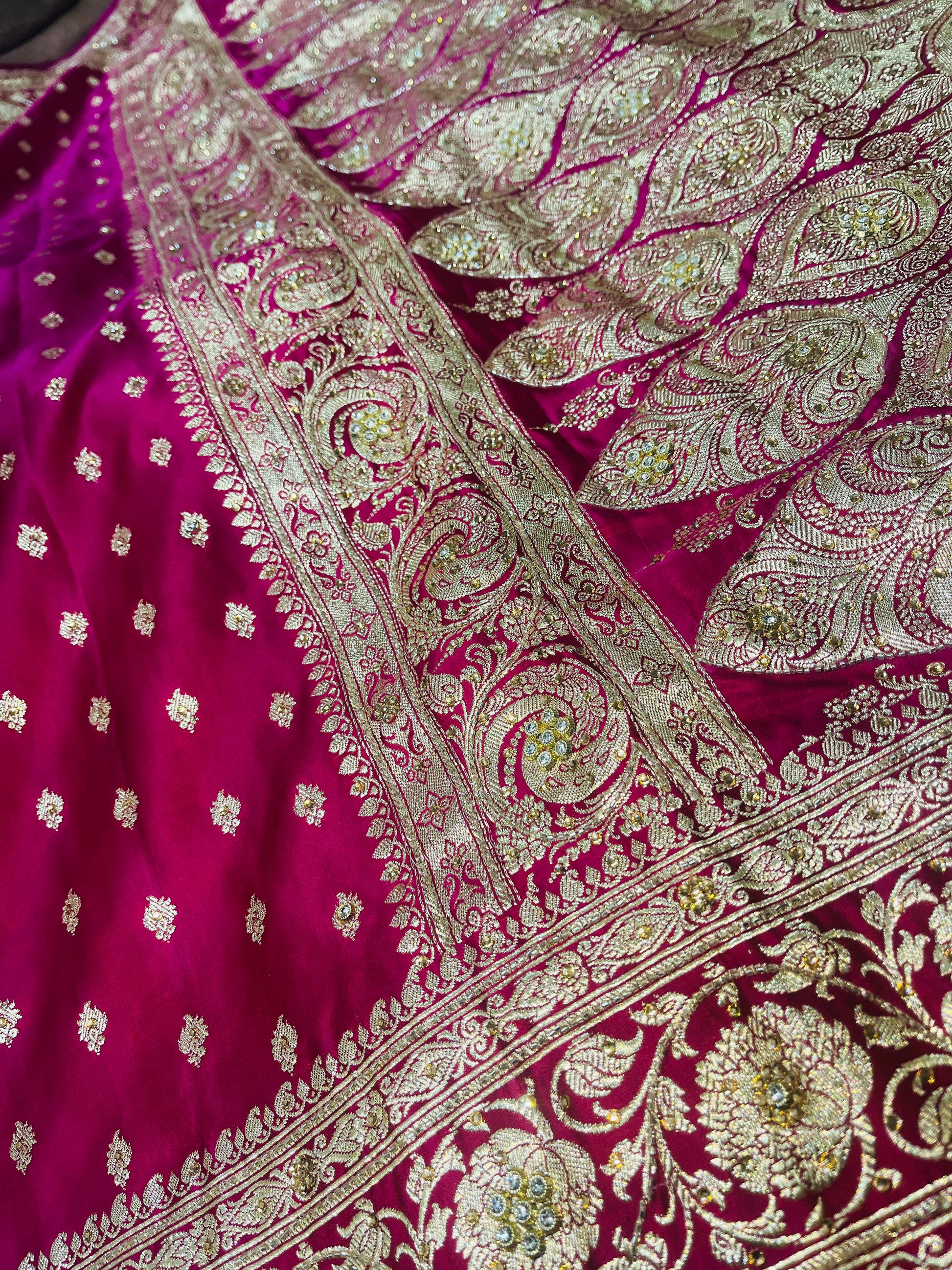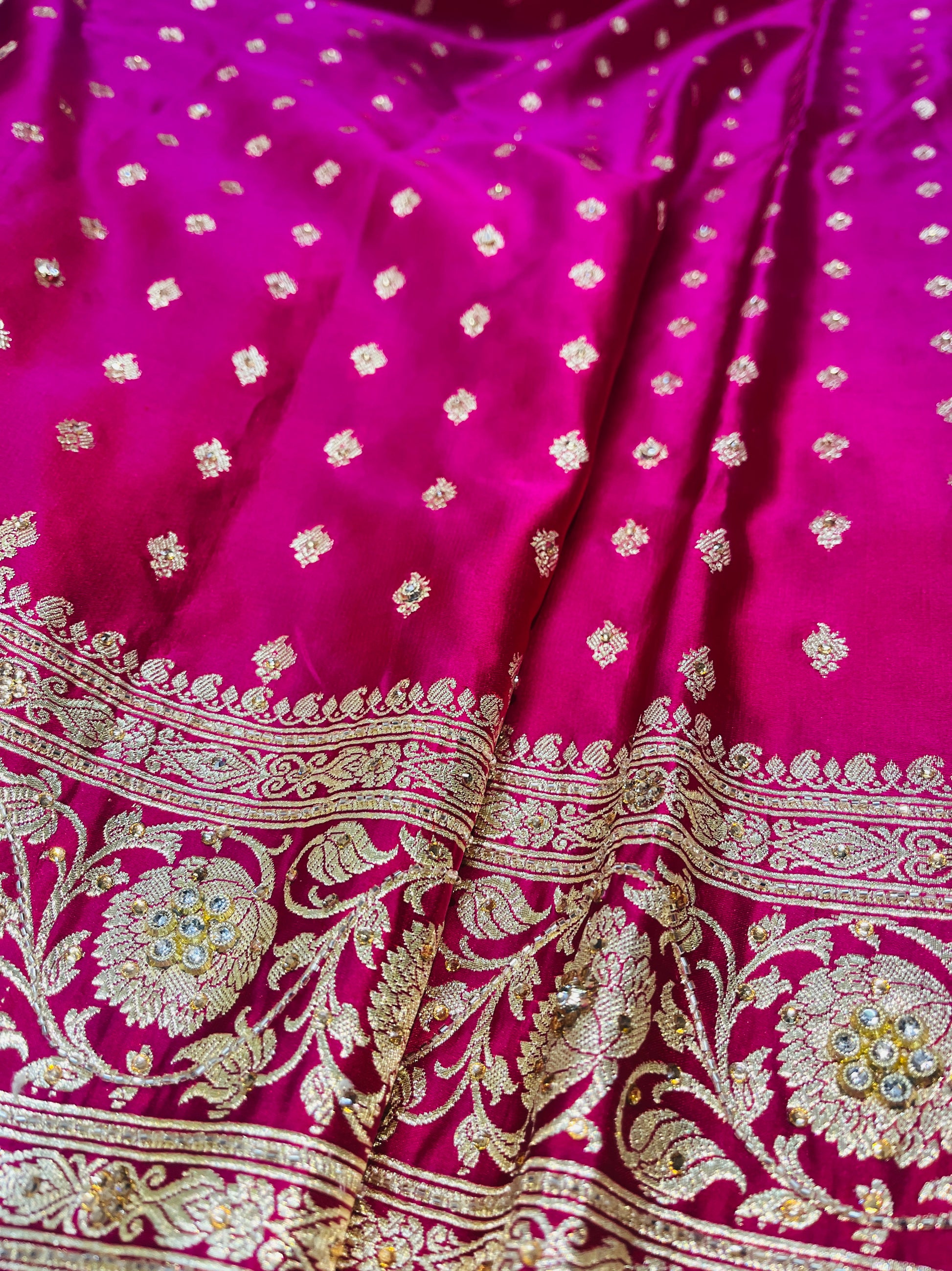 Bridal Banarasi Pure Silk Ruby Pink with stone Work Saree with Intricate Butta Zari Weave – HBP-03