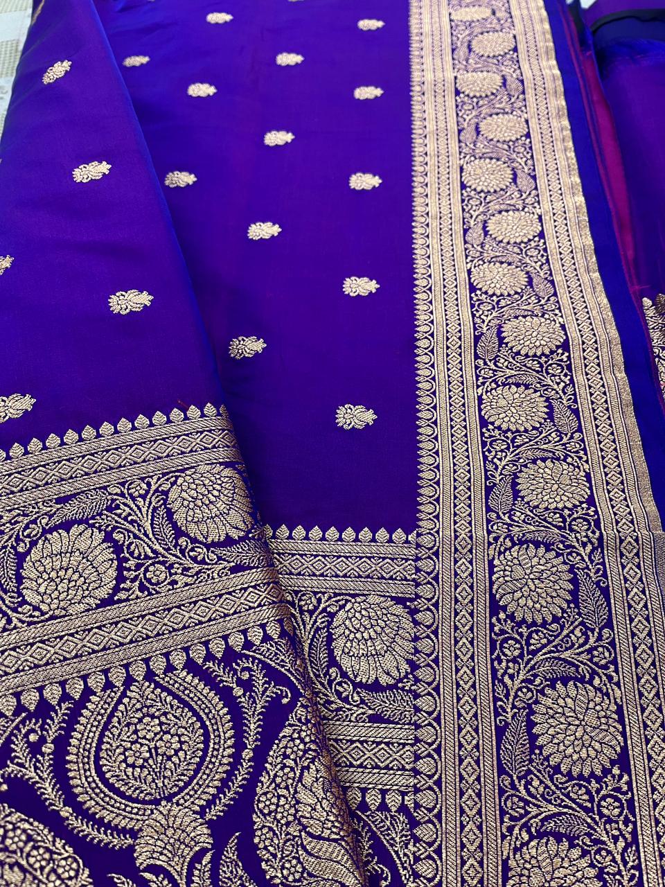 This saree is crafted in pure Banarasi Mashru Silk, known for its rich shine, smooth & Soft texture, and traditional elegance. The fabric features a silk-only weave, offering a luxurious feel with a graceful, fluid drape.